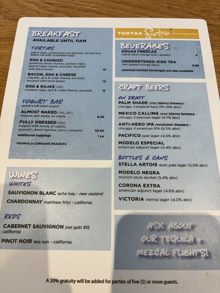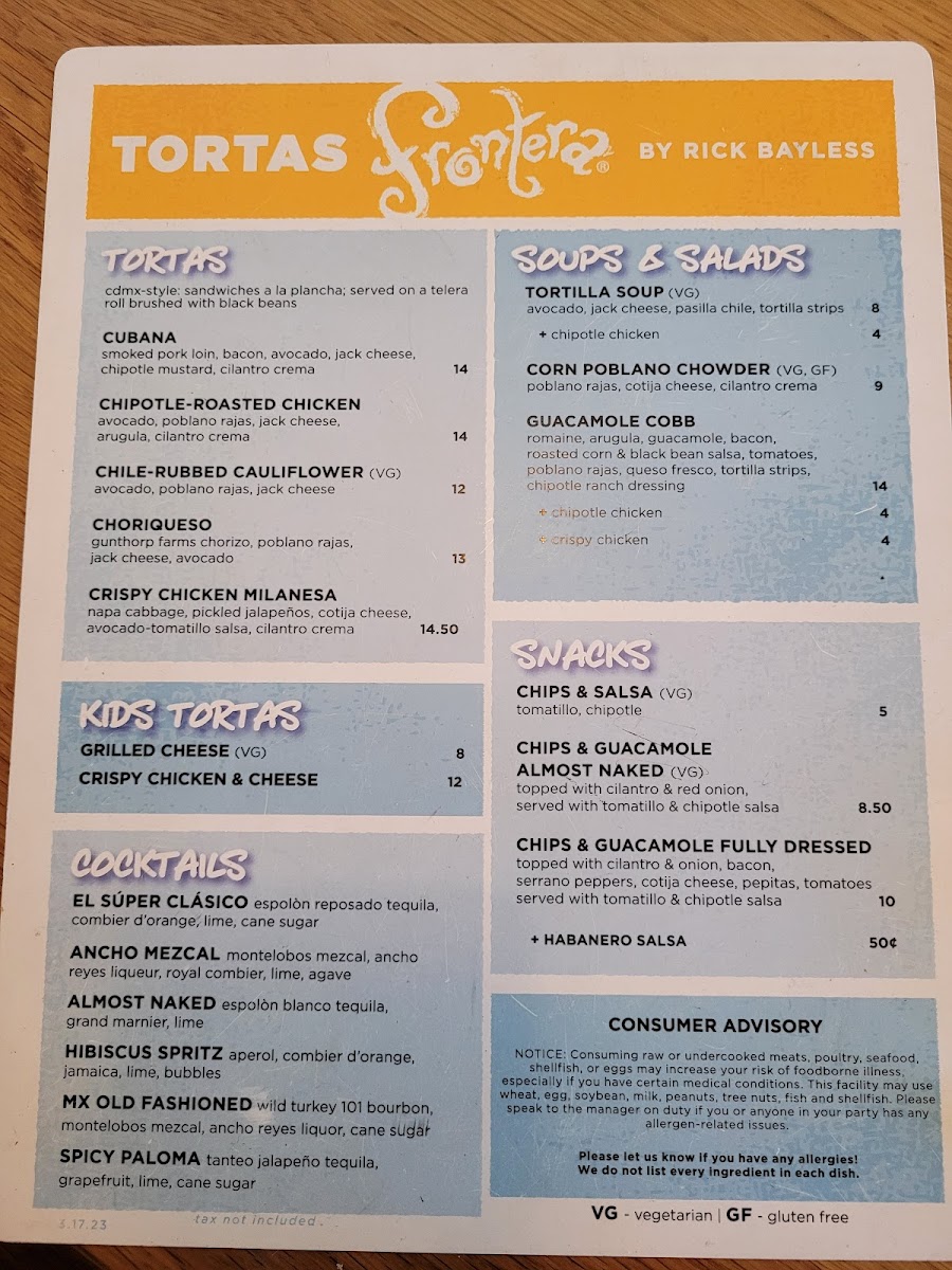 Tortas Frontera Menu